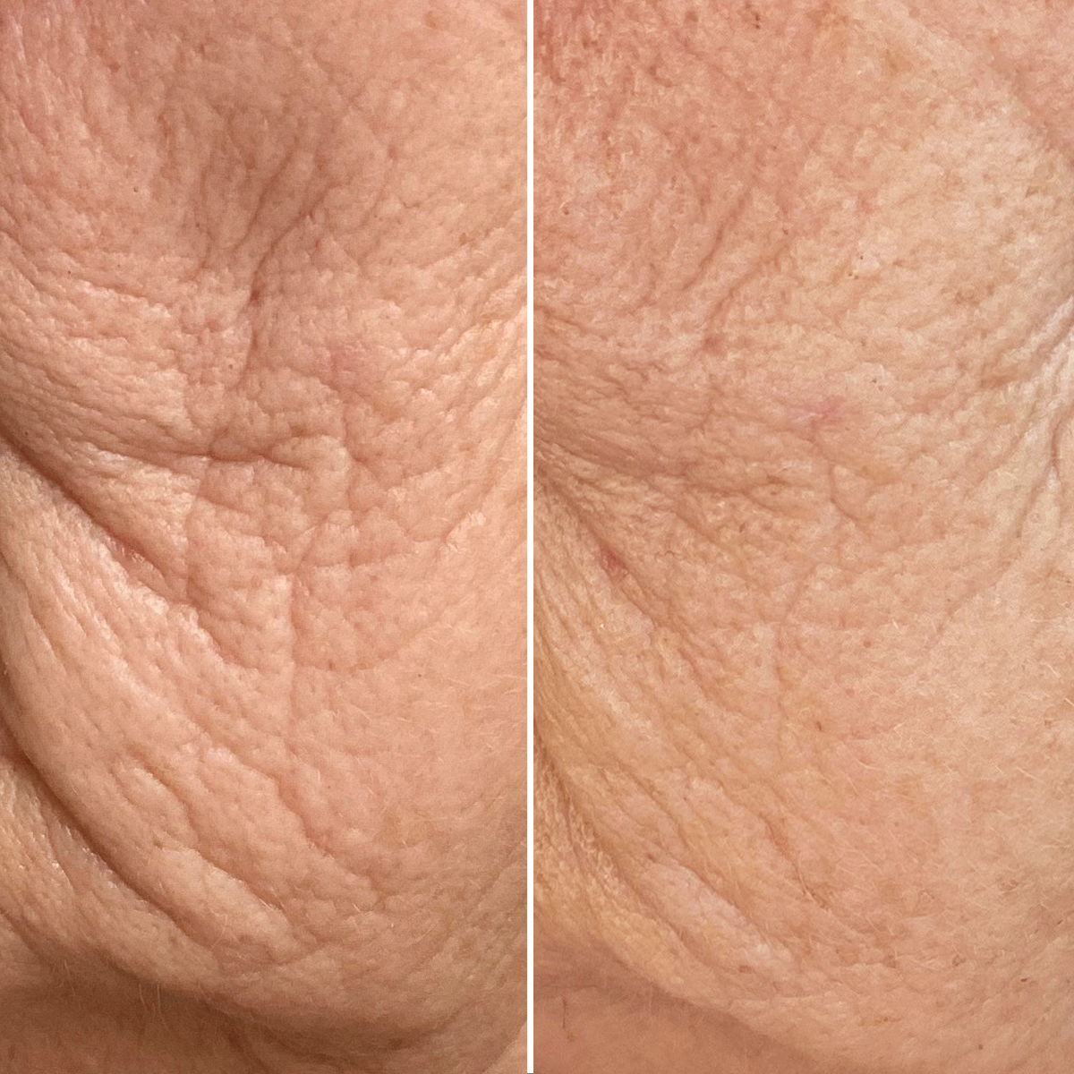 Elmina, 70 jaar, na 8 weken. "Na het afvallen werd mijn huid erg dun en slap. Ik gebruikte elke ochtend en avond de Lifting Peptides 8% Cream en Advanced 4X Collagen Serum. Mijn huid voelt gladder aan en ziet er steviger en gelift uit."